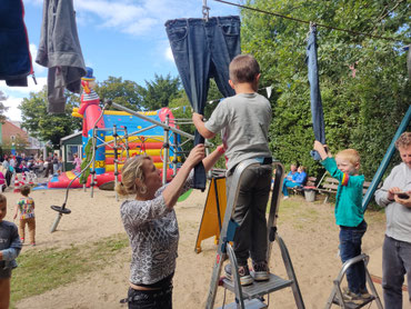 23 Augustus. De laatste zaterdag van de zomervakantie... Voor de speeltuin reden voor een feestje. De vrijwilligers hebben voor die dag wat extra activiteiten neergezet in de tuin, zoals o.a. de Kop van Jut, Bertha de limonadekoe, Boer Barend, Muizenmeppen, Eendjes vissen, Piraten en natuurlijk het beroemde spijkerbroekhangen.